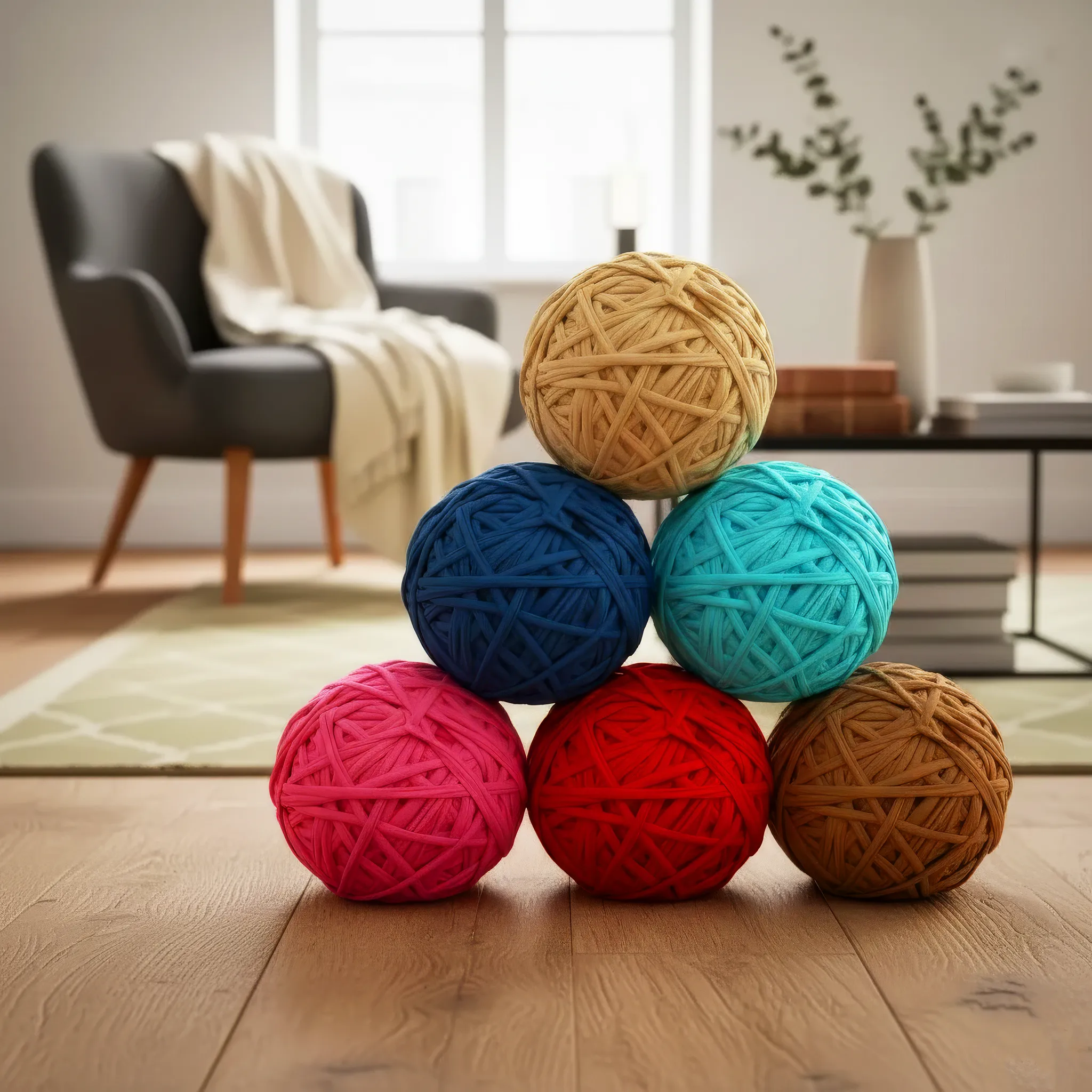 Paquete de 6 bolas de trapillo ALGODÓN LICRADO seleccionado de 500 gramos/unidad, tono y grosor lo más uniforme posible, sin nudos.